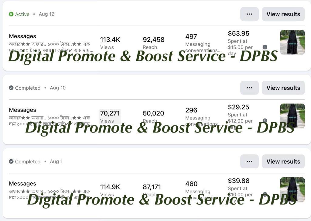 DPBS এর একজন সম্মানিত ক্লায়েন্ট সারা বাংলাদেশে অনলাইনের মাধ্যমে আবায়া ও বোরখার ব্যবসা পরিচালনা করছেন, তিনি দৈনিক মাত্র $10–$15 বাজেটে দুর্দান্ত ফলাফল পাচ্ছেন!